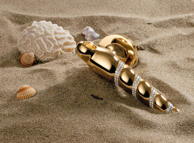 С особой формой с выпуклыми изгибами, Shell Mesh - это совершенно новая серия ручек Linea Calì, которая становится частью линейки Crystal. Цепочка оригинальных кристаллов Swarovski® подчеркивает его форму, в то время как большой набор кристаллов (также из кристалла Swarovski®) отражает его цвет, завершая окончательный эффект и делая его похожим на драгоценный камень, принадлежащий старому кладу, найденному на необитаемом острове.